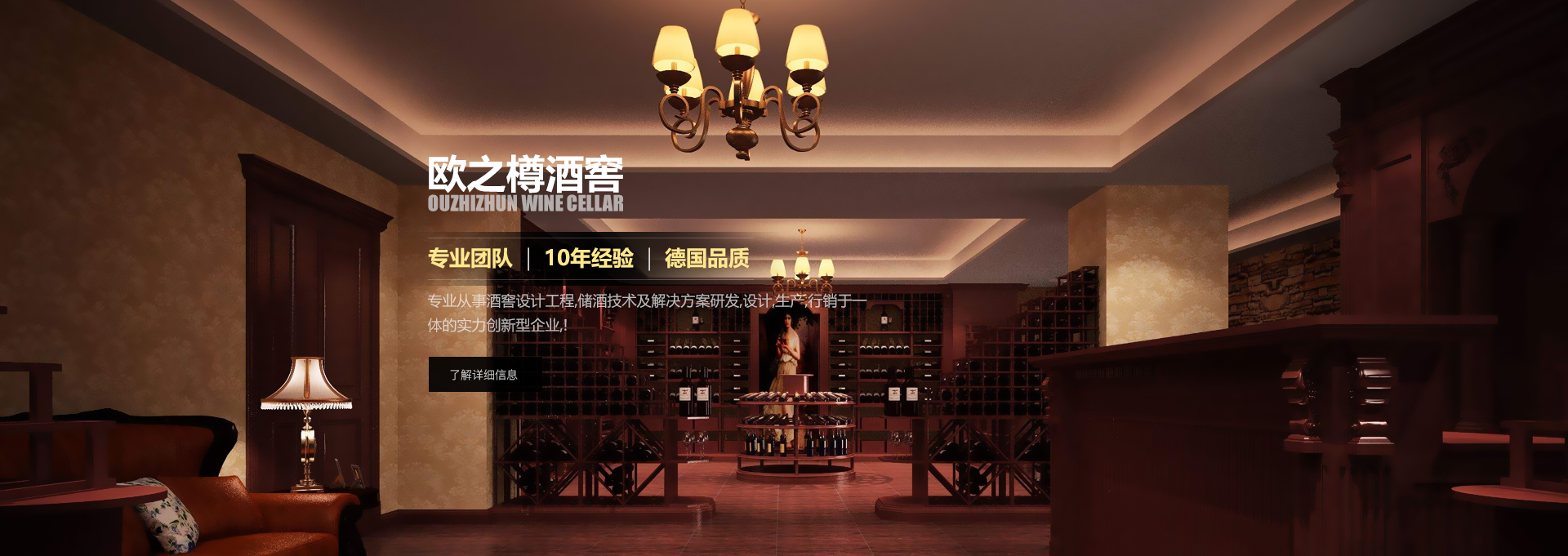 歐之樽酒窖專業(yè)的設(shè)計團隊,通過學(xué)習(xí)歐美成功酒窖的經(jīng)驗與國內(nèi)市場相結(jié)合,使得我們的設(shè)計充滿著歐美氣息的中國風(fēng)。能讓你在緊張的城市氛圍中找到在大自然 中享受美酒的感覺。歐美進口的全自動控溫控濕系統(tǒng)既穩(wěn)定又方便,
